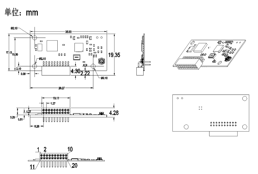 ? 小體積 36X19MM,20 PIN 雙排插座封裝,安裝方便