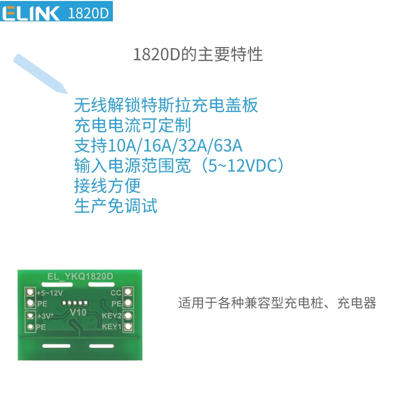 EL_YKQ1820D可用于解鎖特斯拉電動車的充電蓋板,使用于各種充電設(shè)備,可選充電功率,無線遙控解鎖充電蓋板。
